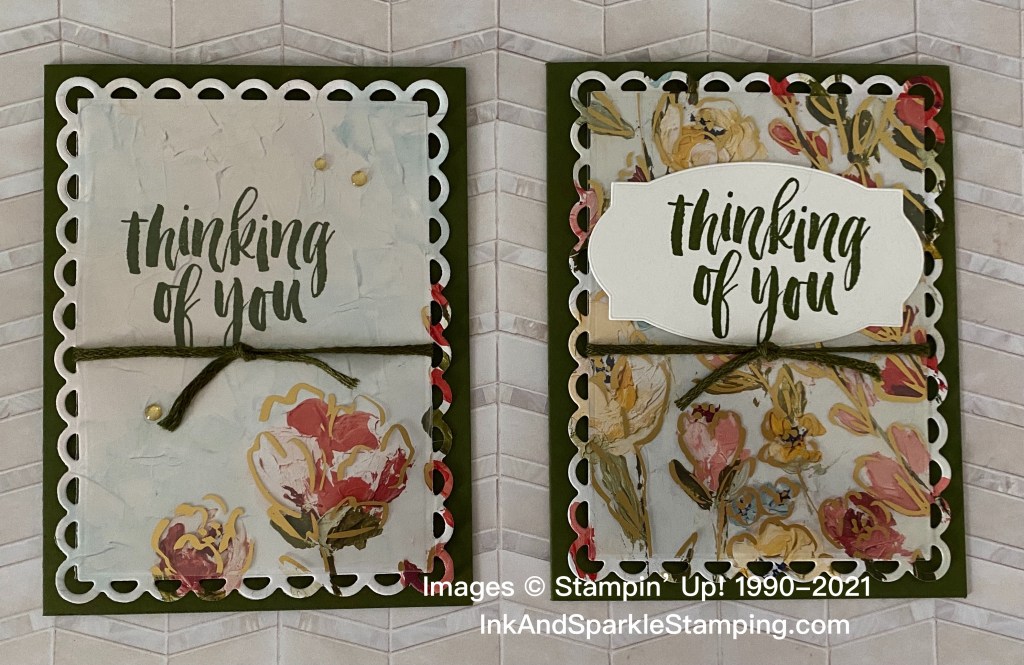 Today’s project for 3-2-1 Stamp on FaceBook Live showcased the beautiful Fine Arts Designer Series Paper again. l am showcasing the Fine Arts Suite from the current January to June Stampin’ Up! mini catalogue. The card from today and last week are part of my upcoming Cookies and Cards class next Friday (May 28).