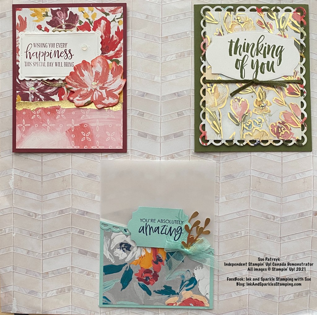 Cost is $20 or free with a minimum $30 Stampin’ Up! merchandise orders with me. You supply adhesive and stamps for greetings. You can shop and place an order online with me by clicking right HERE or contact me directly to place your order and join the list to porch-pickup your supplies for this month’s class. If you’d prefer just to pay the class fee, please send an etransfer for the class fee of $20 or contact me for other payment options. Please arrange a specific day and time to pick up your supplies as this week looks to be quite rainy and I want to make sure your supplies don’t sit outside and perhaps get wet – that’d be no fun for sure!