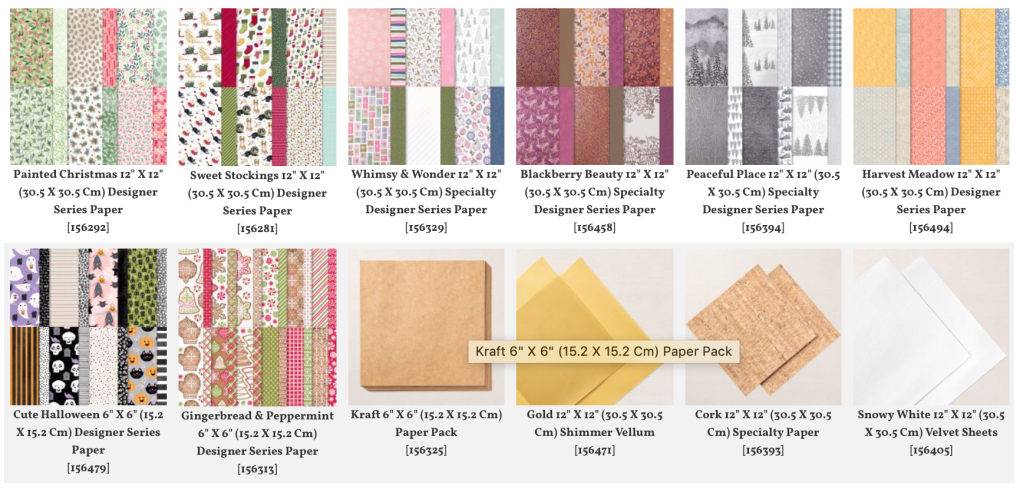 Designer Series Paper Share INCLUDES one 6″x12″ sheet of each pattern in each 12″x12″ package of Designer Series Paper listed below plus one 6″x6″ piece of each pattern of 6″x6″ packages (see pages 74 & 75 of the July to Dec 2021 Mini Catalogue):