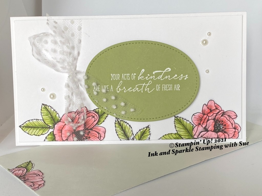 Garden Wishes with True Love DSP for 3-2-1 Stamp FaceBook Live March 31, 2021 ( CASE’d (Copy and Share Everything) from Demonstrator Planning FaceBook Group)My alternative version of the card using the retired Paper Blooms Designer Series paper from the Jan/Feb 2021 Sale-A-Bration brochure